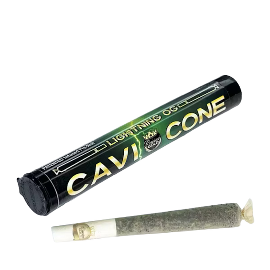 At 1.5 grams, the Lightning OG Cavi Cone burns slow and evenly, making it perfect for both solo indulgence and sharing. Recognized as one of the strongest infused pre-rolls in the world, Caviar Gold ensures consistent potency and quality with every cone.
