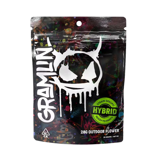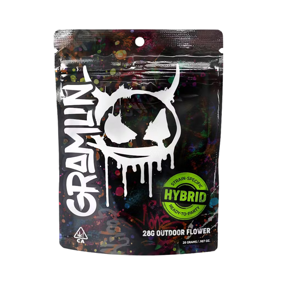 "Gramlin just broke outta the grow room and into the great outdoors, ready to spark a new fire. This Peach Cobbler hybrid is juiced by the sun and ready-to-party. Strap in to unlock Gramlin Mode – this is sun-fueled flower with scary power. - Sun Fueled Outdoor Flower - All Bud, No Shake - Scope the Buds – Bottom Window - Hybrid Flower"