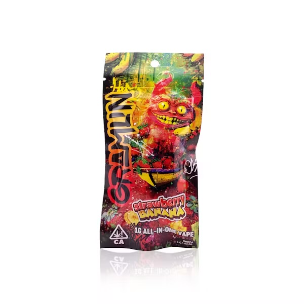 The Gramlin - Disposable - Strawberry Banana - 1G is a full-gram, all-in-one vape pen (AIO) featuring the potent Strawberry Banana strain. This concentrate is consistently classified as an Indica-dominant Hybrid (a cross of Strawberry Bubblegum and Banana Kush), delivering high THC concentrations that often range between 83% and 90% THC. The disposable vape is celebrated for its incredibly accurate and satisfying flavor profile, blending the creamy, sweet essence of ripe banana with juicy strawberry and berry notes. Strawberry Banana delivers a strong, yet smoothly euphoric high, promoting deep relaxation, happiness, and a tranquil body melt, making this convenient device an ideal choice for experienced users seeking evening enjoyment, stress relief, and a comforting, dessert-like experience.