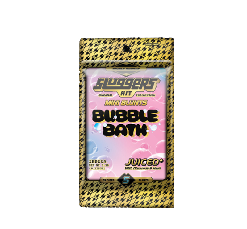 The Sluggers Bubble Bath Infused Mini Blunts 5 Pack is a potent, Indica-dominant product designed for a deeply relaxing experience, often marketed as the brand's "Juiced" line for seasoned consumers. Each pack contains five 0.7g mini blunts, totaling 3.5g of cannabis per package, with high THC levels typically ranging in the 40-49% range, depending on the specific batch and lab testing. These mini blunts are triple-infused for maximum potency, made with premium flower, liquid diamonds or solventless hash, and coated in kief or diamonds. The strain itself is a cross of The Soap and Project 4516, which contributes to its signature flavor profile described as a blend of gassy notes, a refreshing mint, floral undertones, and a pinch of sweet finish. Given its Indica dominance, the effects are highly sought after for a relaxing, soothing high, a body buzz, and unwinding at the end of the day, making it an excellent choice for a calming, nighttime smoke.
