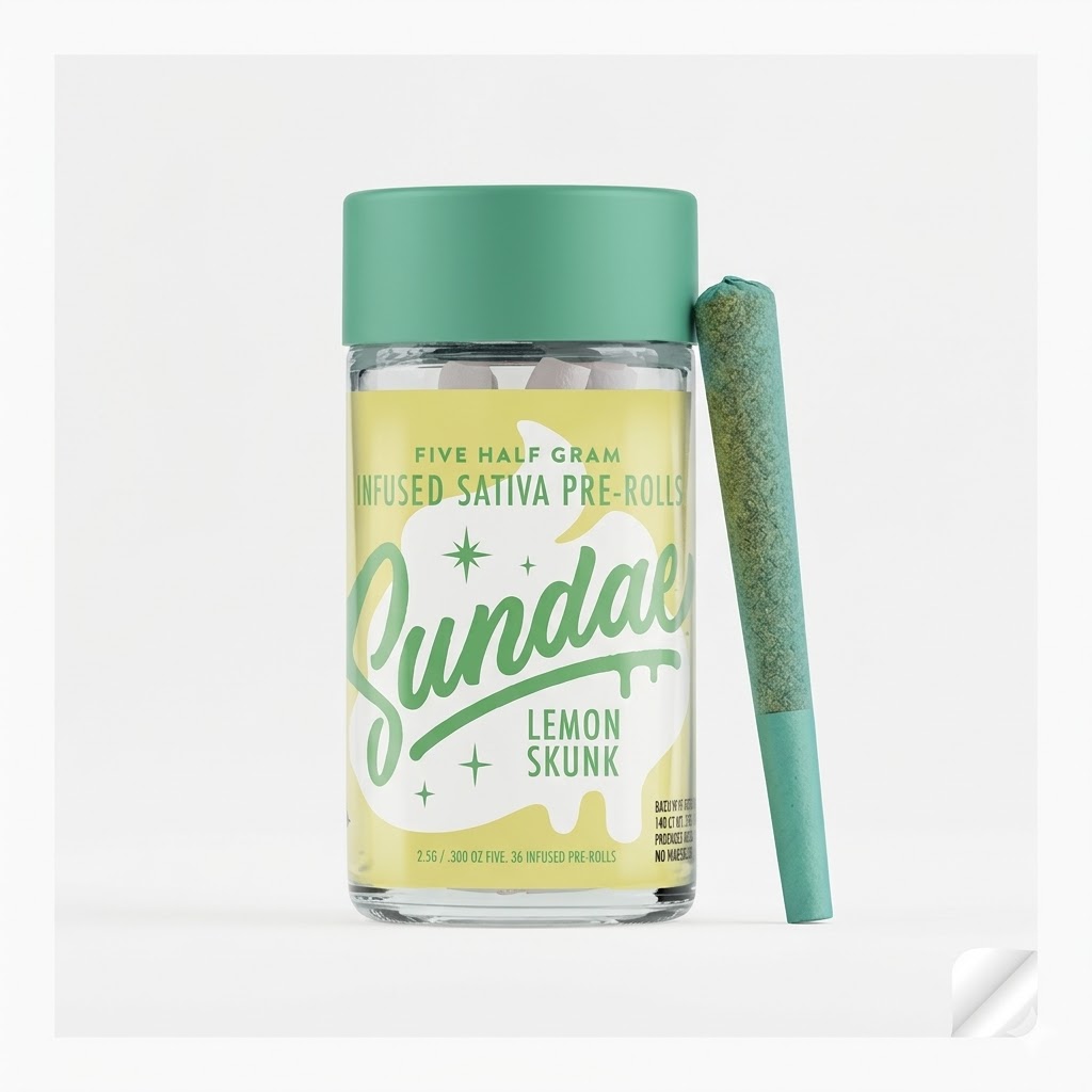 Enjoy bright citrus flavor and enhanced potency with Sundae Infused Pre-Roll Lemon Skunk 5-Pack, a premium multi-pack designed for cannabis consumers who want a flavorful and elevated smoking experience. Produced by Sundae, these infused pre-rolls combine high-quality cannabis flower with potent concentrates, delivering a smooth, terpene-rich session in a convenient ready-to-smoke format.