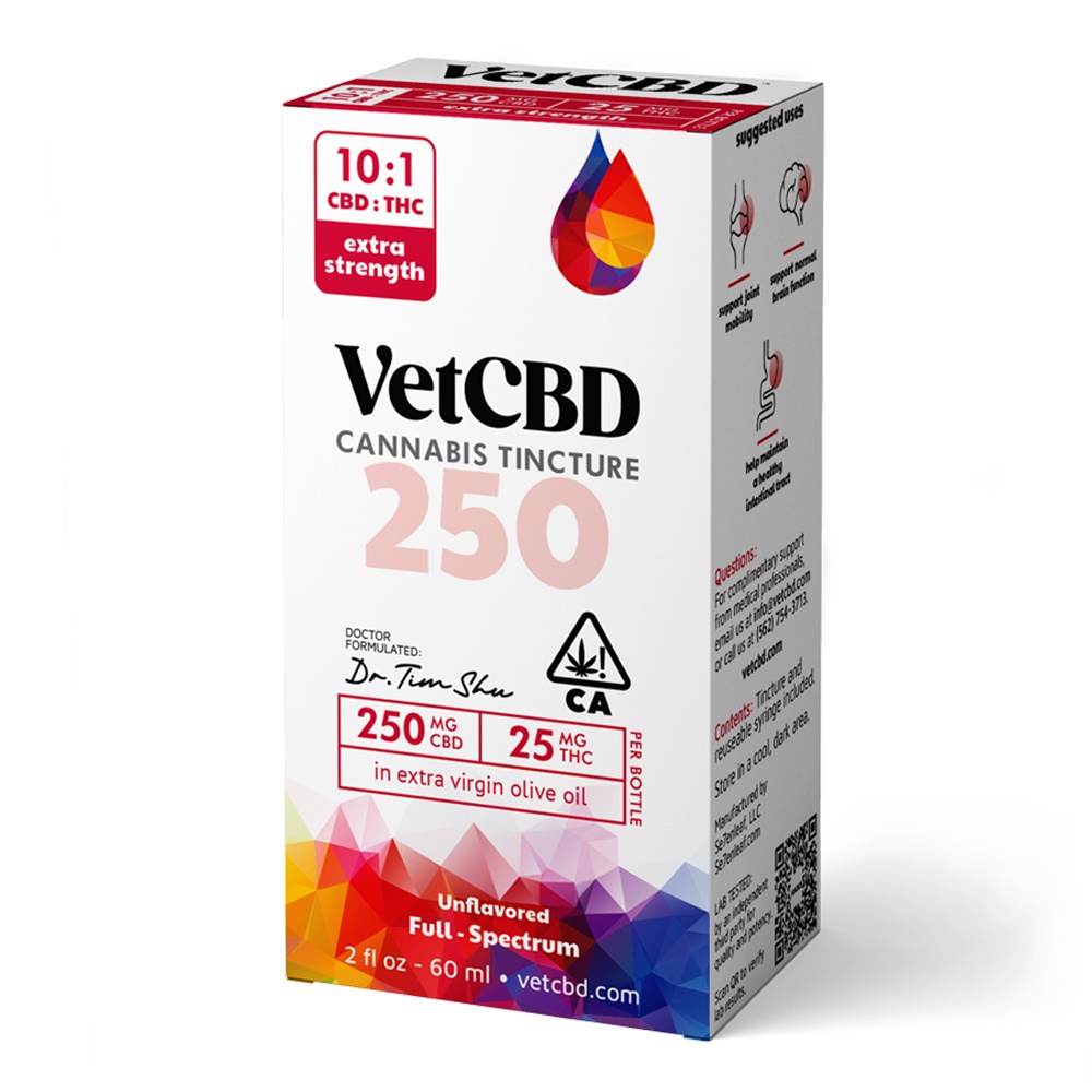 VetCBD – Extra Strength Tincture – 250MG is a premium, veterinarian-formulated hemp tincture designed to support your pet’s overall wellness. With 250mg of CBD per bottle, this extra-strength formula provides a convenient and effective way to help manage stress, promote calm, and support joint and mobility health in dogs, cats, and other pets.