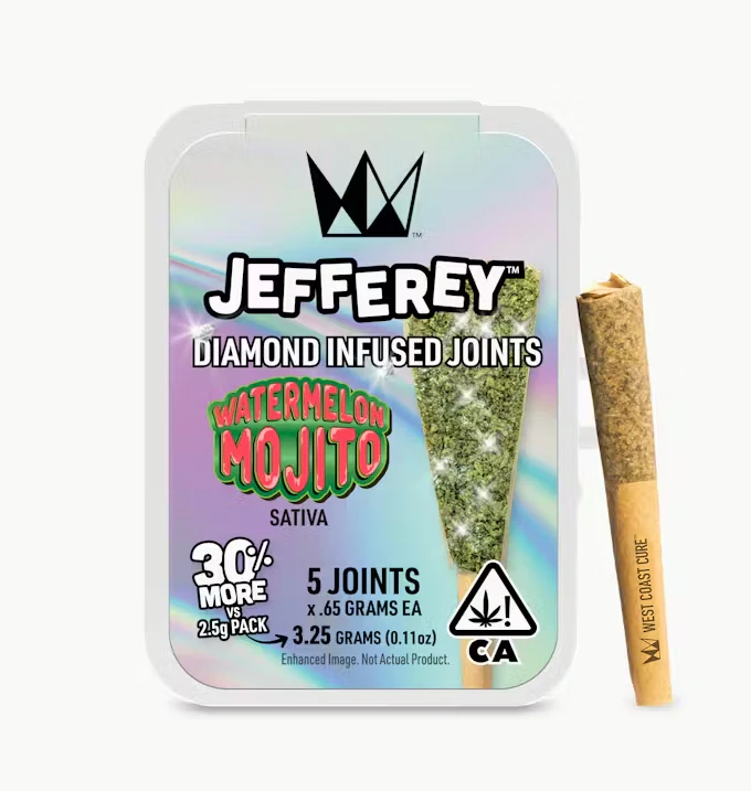 This flavor-packed sativa delivers a rush of juicy watermelon, cool mint, and a zesty citrus twist—just like your favorite cocktail, but in Jefferey form. These mini joints infused with diamonds deliver a crisp, uplifting hit that’s perfect for sunny days and turns every rip into a smooth, refreshing escape.