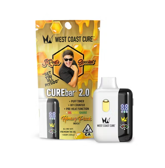 The JRod Special Honey Pack CUREbar 2.0 is as smooth as it sounds. This Indica All-In-One vape blends sweet honey flavor with that signature WCC gas for a heavy high that's perfect for kicking back after a long day or keeping you going throughout the night (IYKYK). Approved by JRod and crafted by WCC, this honey pack will get you all pitudo.
