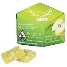 Wyld's mouth-watering Sour Apple gummies are infused with THC and Sativa terpenes for a vibrant, uplifting high. 10mg THC per gummy 100mg THC per container